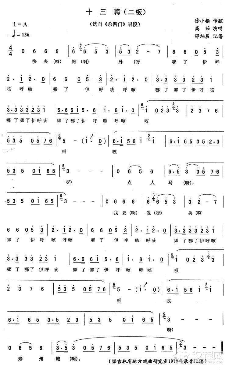 戏曲曲谱十三嗨(一板 [《杀四门》唱段])
