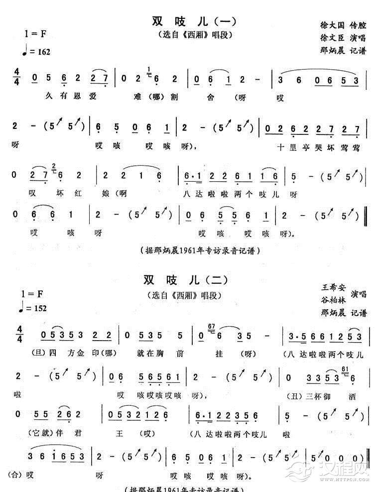 戏曲曲谱单吱儿(一 [《西厢》唱段])