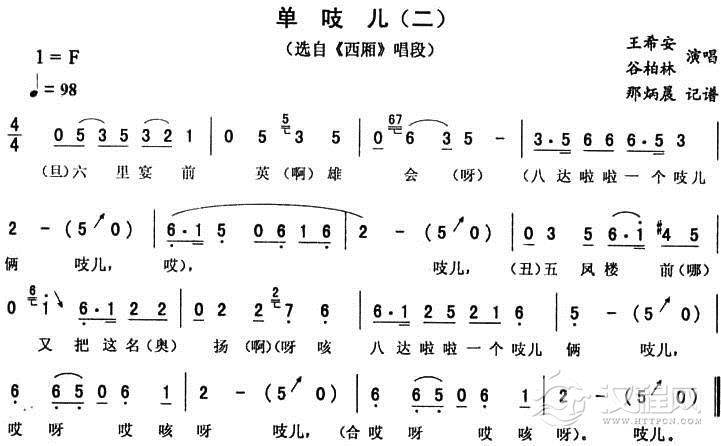 戏曲曲谱单吱儿(一 [《西厢》唱段])