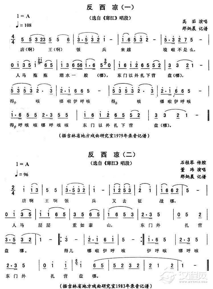 戏曲曲谱樊梨花五更(《寒江》唱段)
