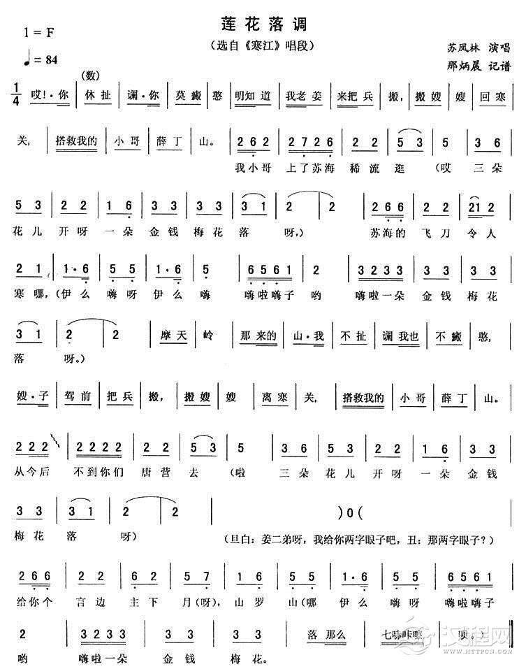戏曲曲谱樊梨花五更(《寒江》唱段)