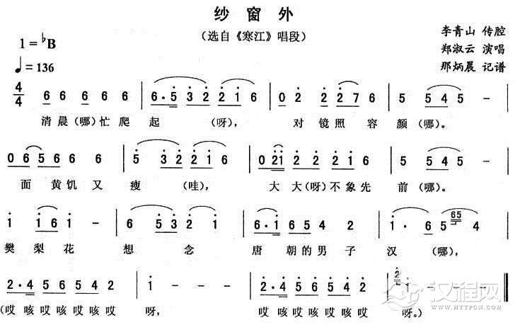 戏曲曲谱樊梨花五更(《寒江》唱段)