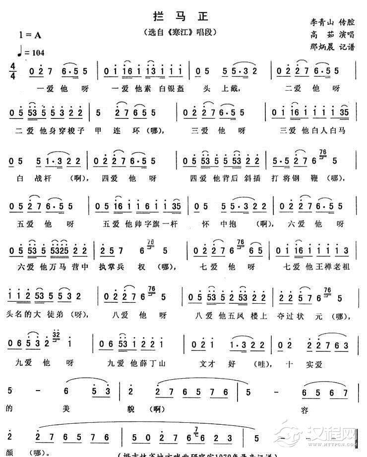 戏曲曲谱传令(《寒江》唱段)