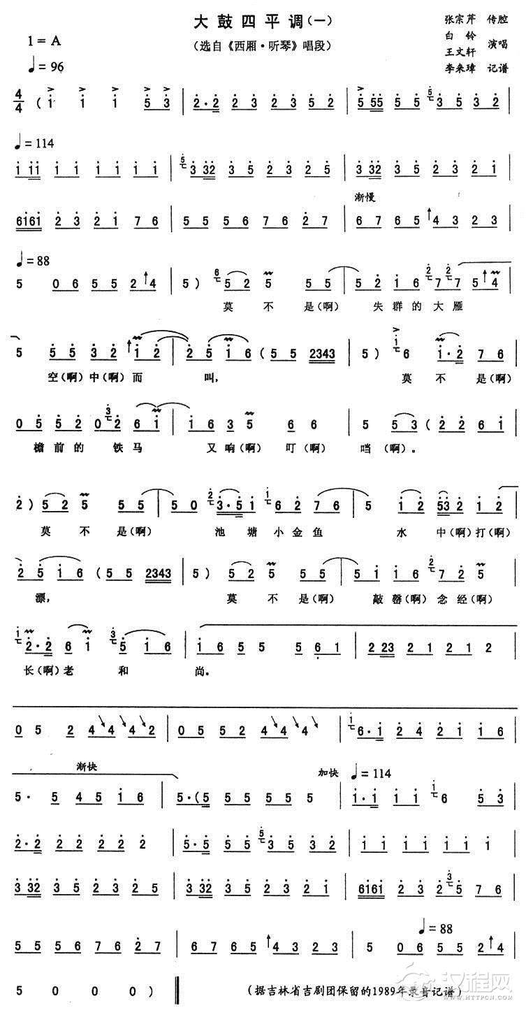 戏曲曲谱慢西城(三)(《张四姐临凡》唱段)