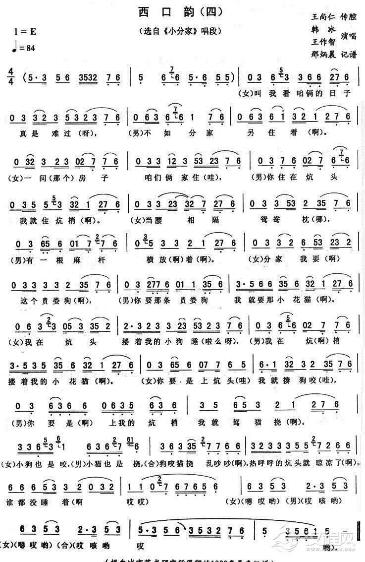 戏曲曲谱西口韵(三 [《扎花帐》唱段])