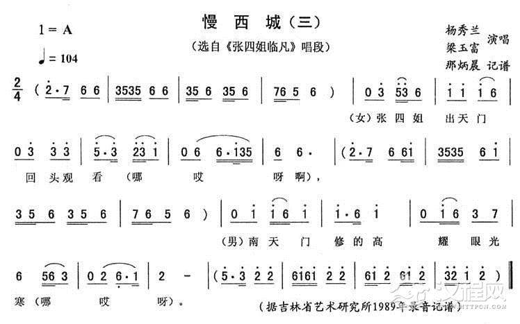 戏曲曲谱慢西城(一)(《双锁山》唱段)