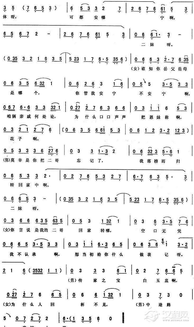 戏曲曲谱秧歌柳子(二—带锣鼓 [《秧歌》唱段])