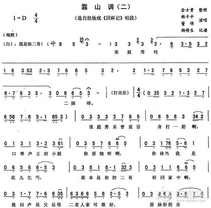 戏曲曲谱靠山调(一)( 《梁赛金擀面》唱段)