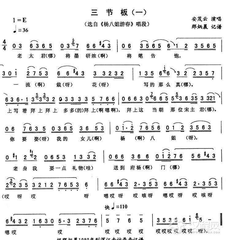 戏曲曲谱三节板(二 [《双锁山》唱段])