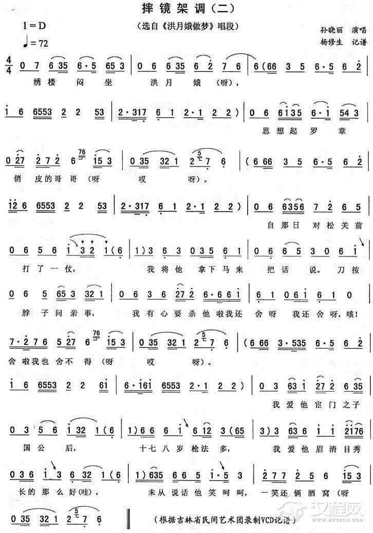 戏曲曲谱摔镜架调(一 [《王二姐思夫》唱段])