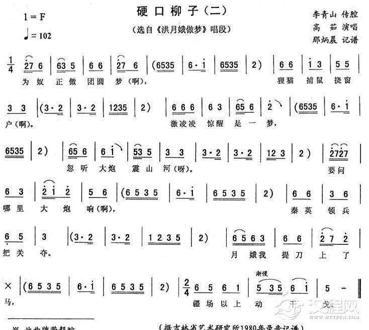 戏曲曲谱硬口柳子(一 [《洪月娥做梦》唱段])