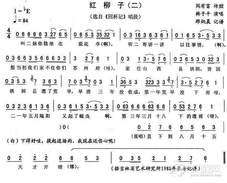 戏曲曲谱红柳子(一 [《包公赔情》唱段])