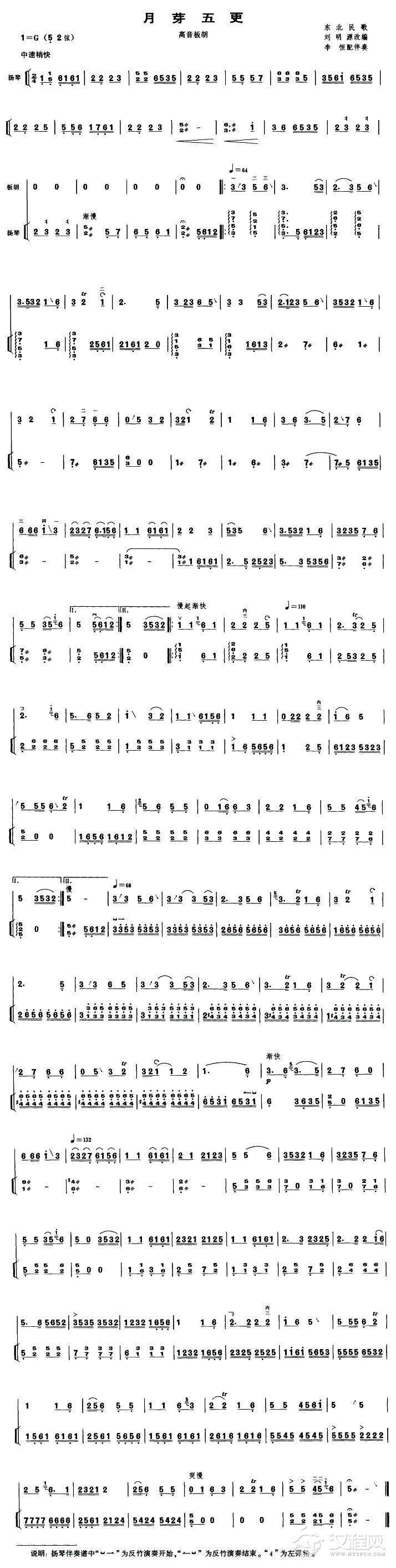 月芽五更(高音板胡、扬琴伴奏谱)