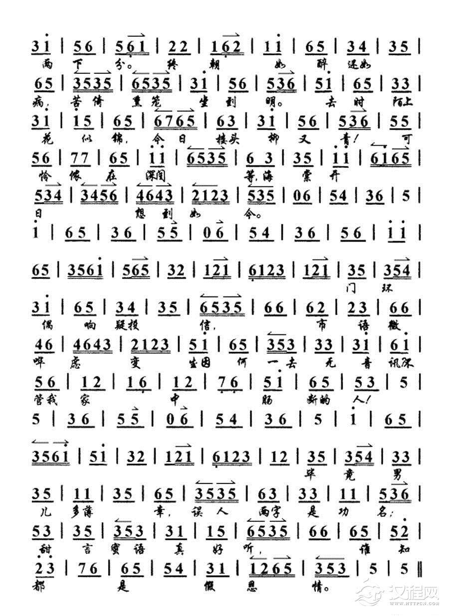 戏曲曲谱红柳子(二 [《回杯记》唱段])