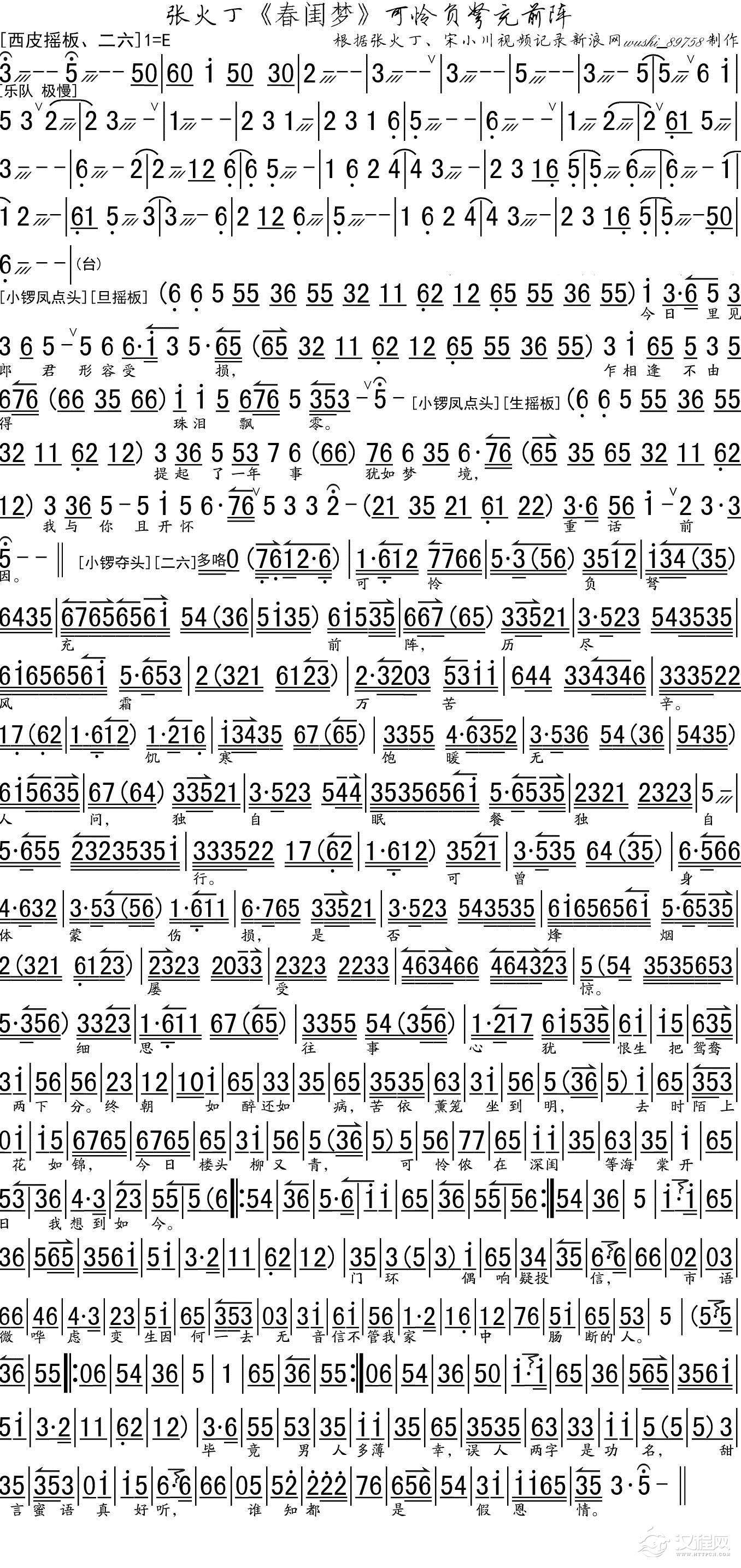 戏曲曲谱春季里风吹万物生(《花为媒》选段)