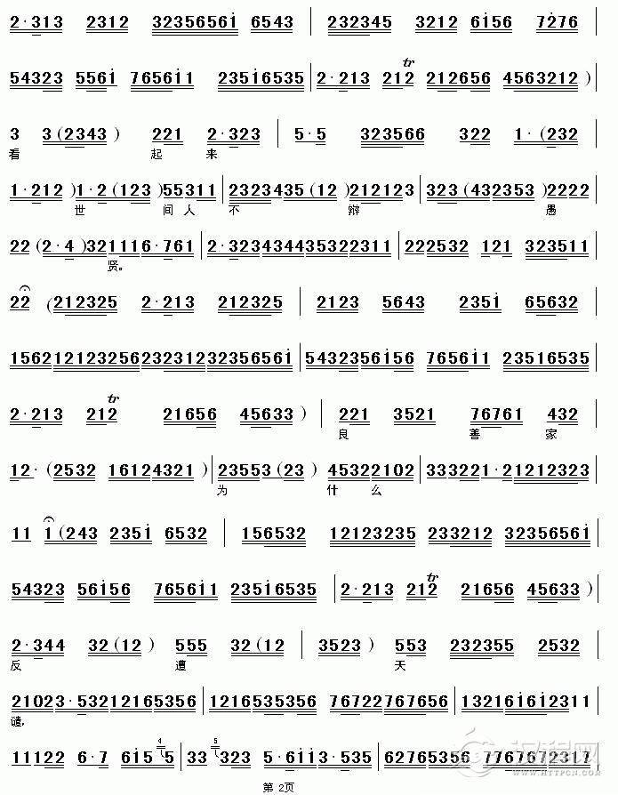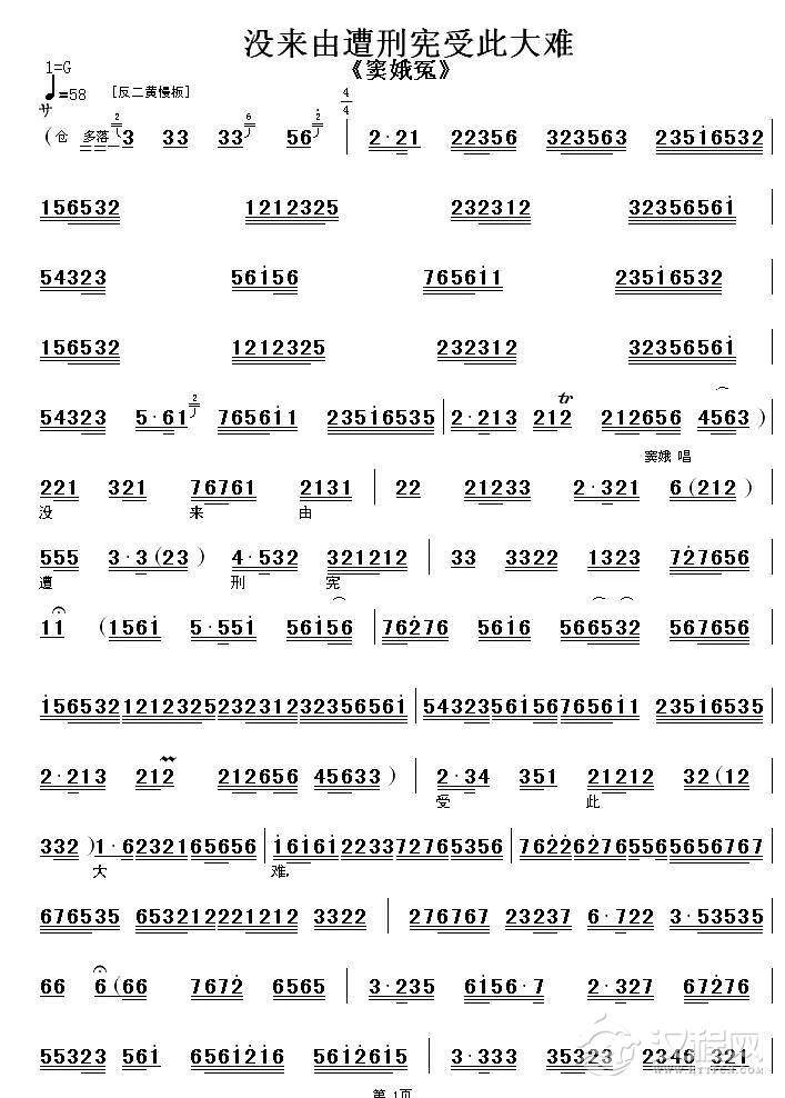 戏曲曲谱哭一声二丫头寿命短(《杨三姐告状》杨母唱段)