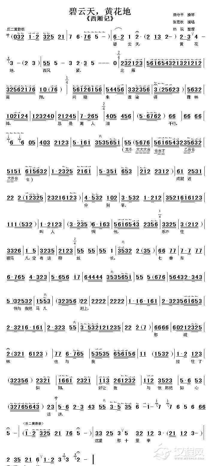 戏曲曲谱钗头凤(《陆游与唐婉》选段)