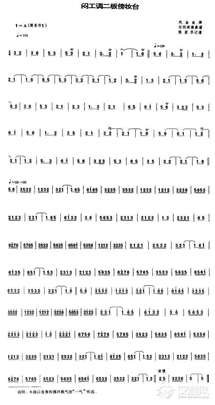 曲谱大全小工调二板傍妆台(唢呐谱)