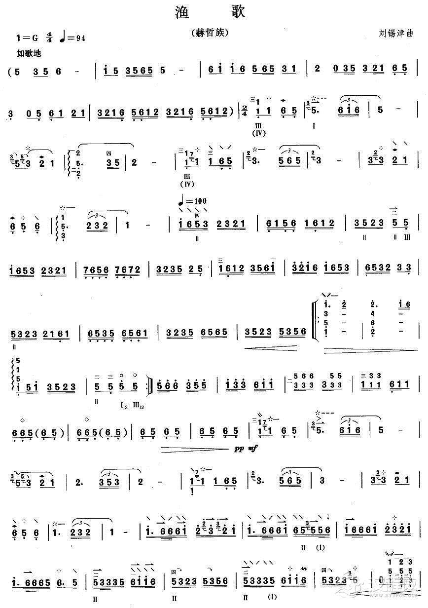 曲谱大全柳琴考级曲目七级:唱支山歌给党听