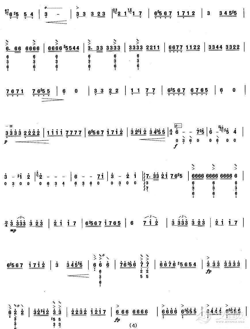 曲谱大全柳琴考级曲目七级:冬猎(鄂伦春族)