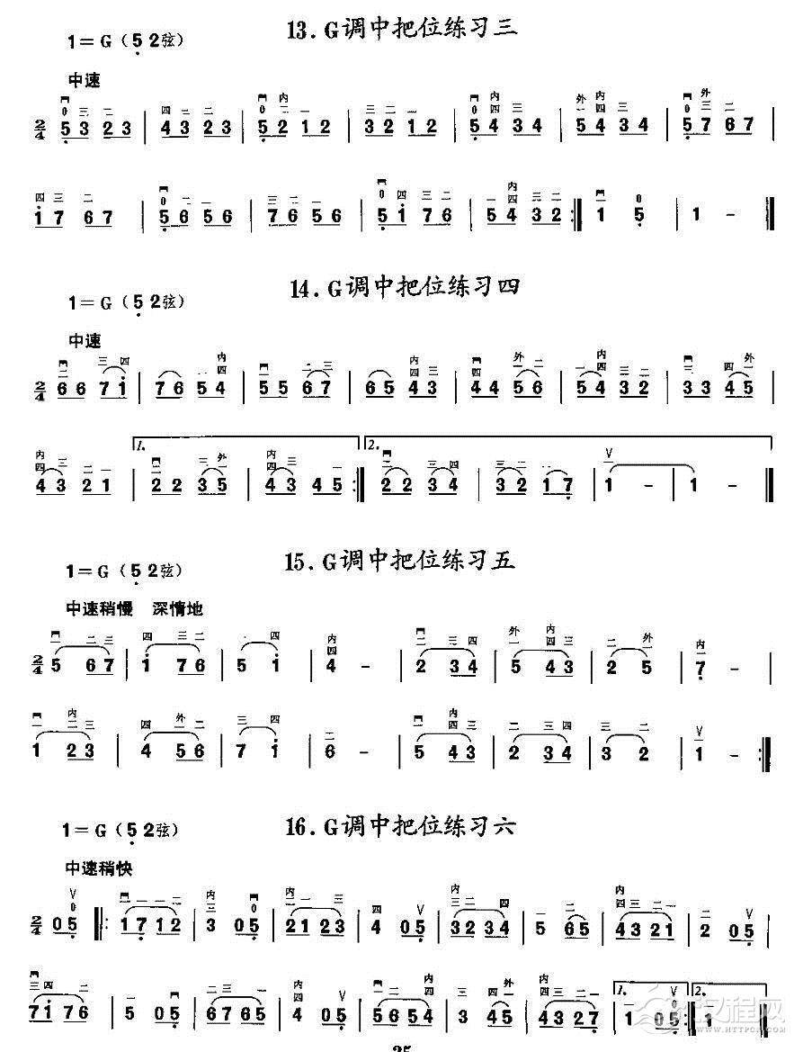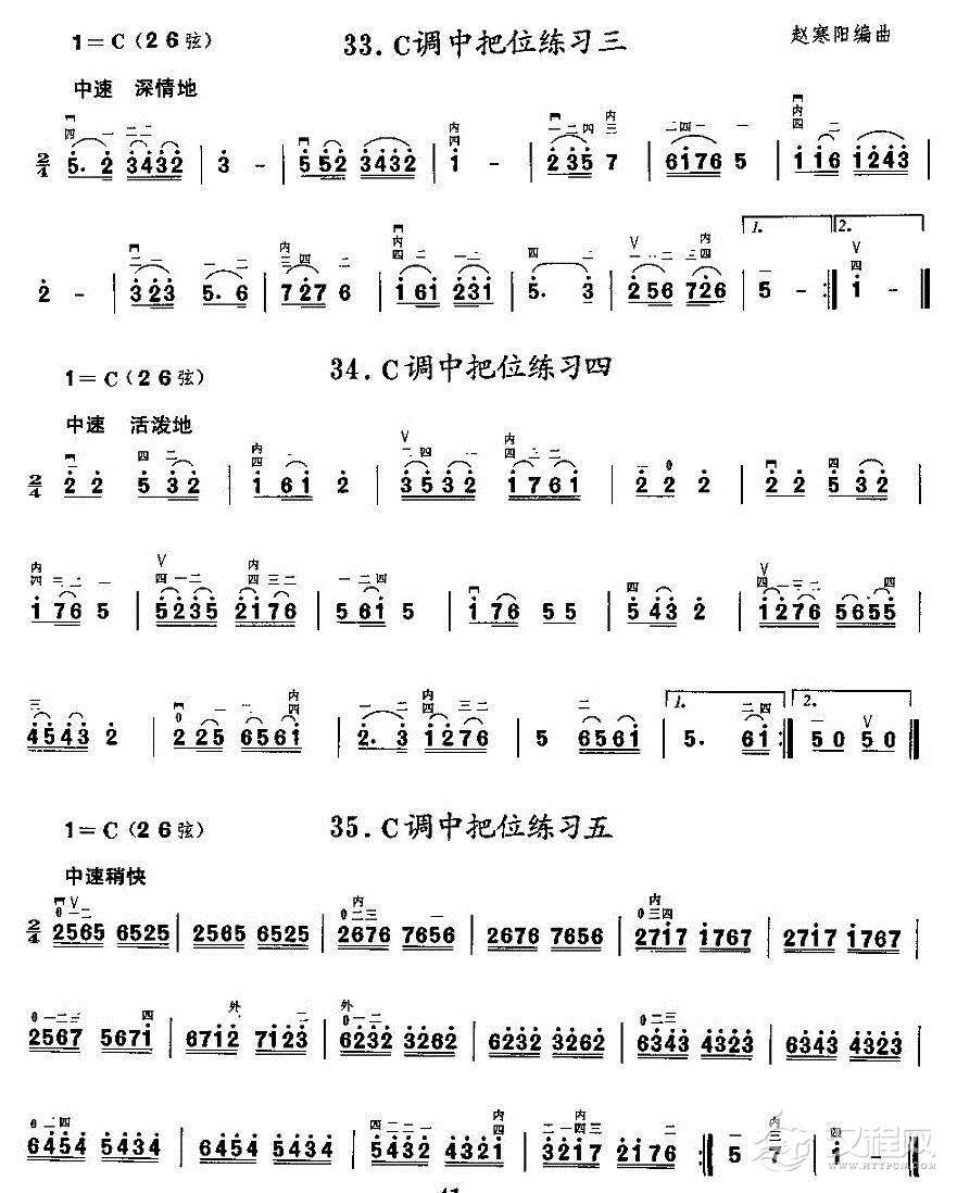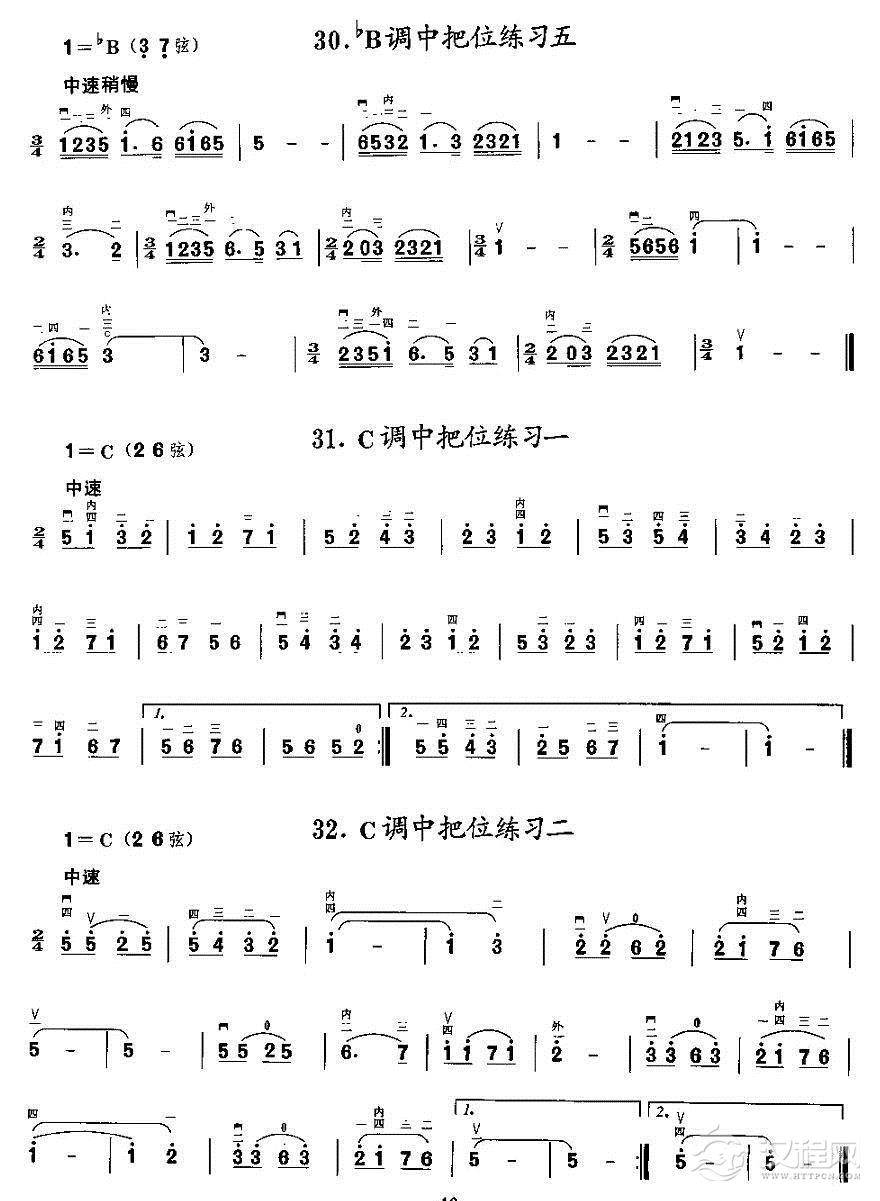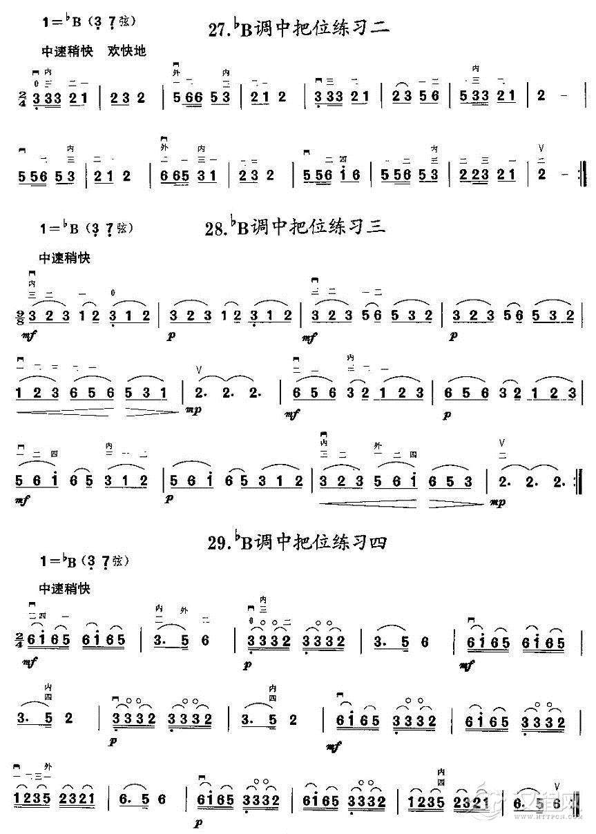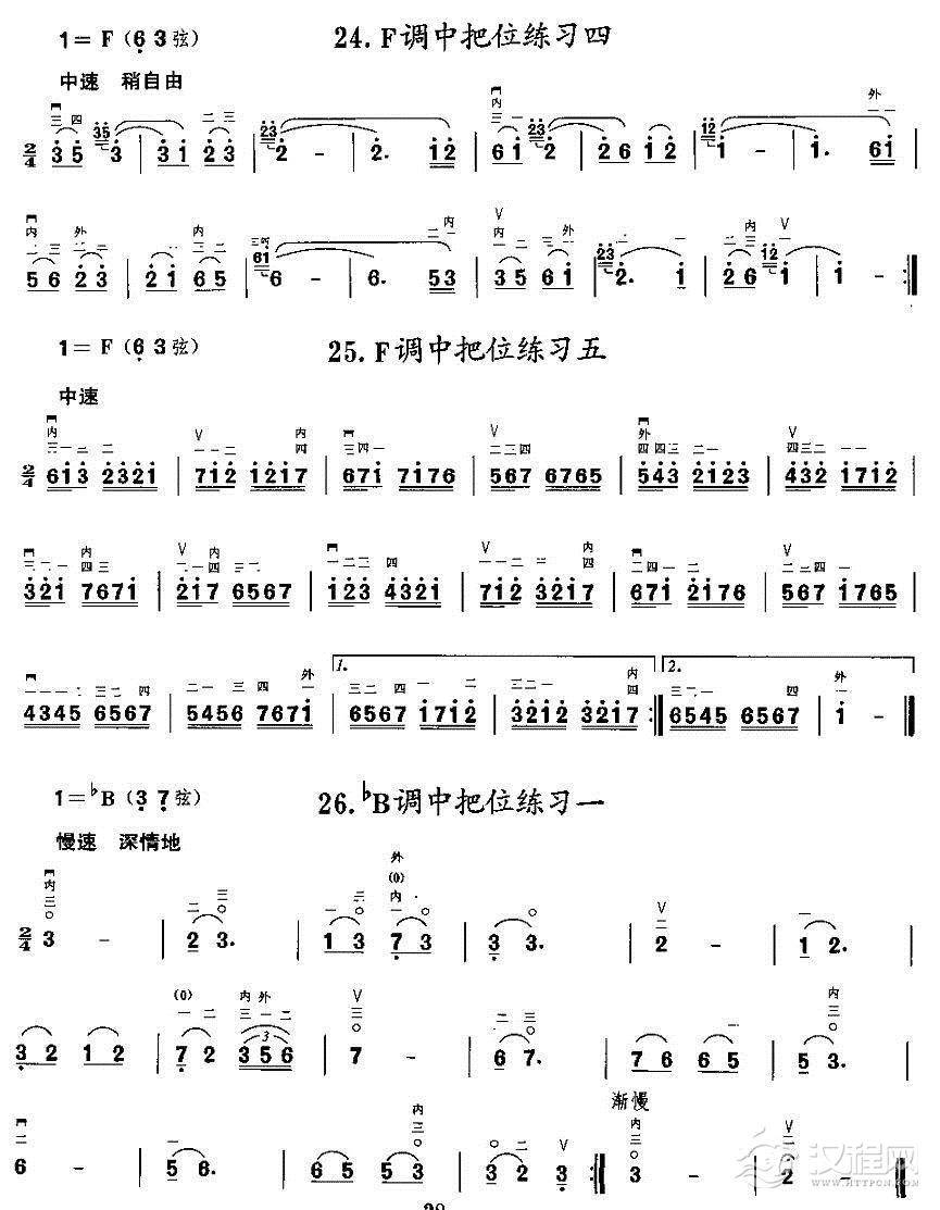 曲谱大全二胡微型练习曲:各调上、中把换把练习