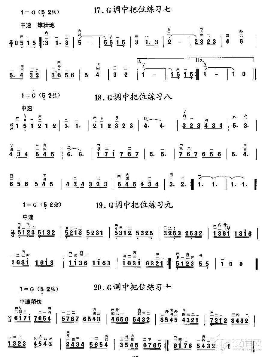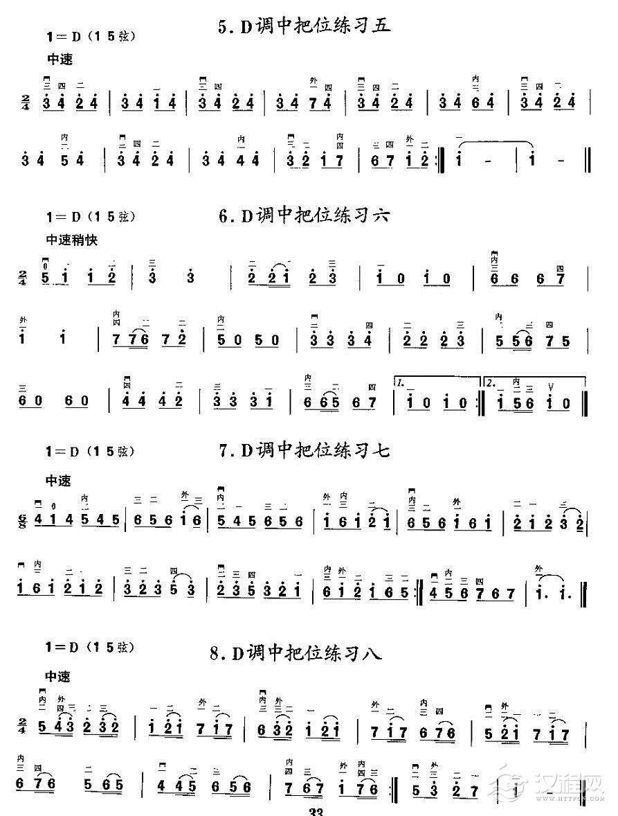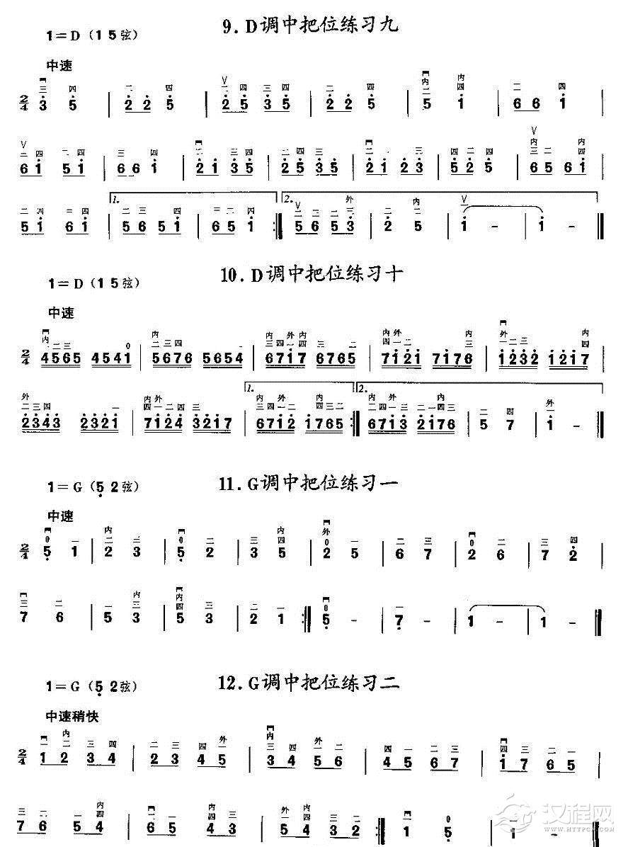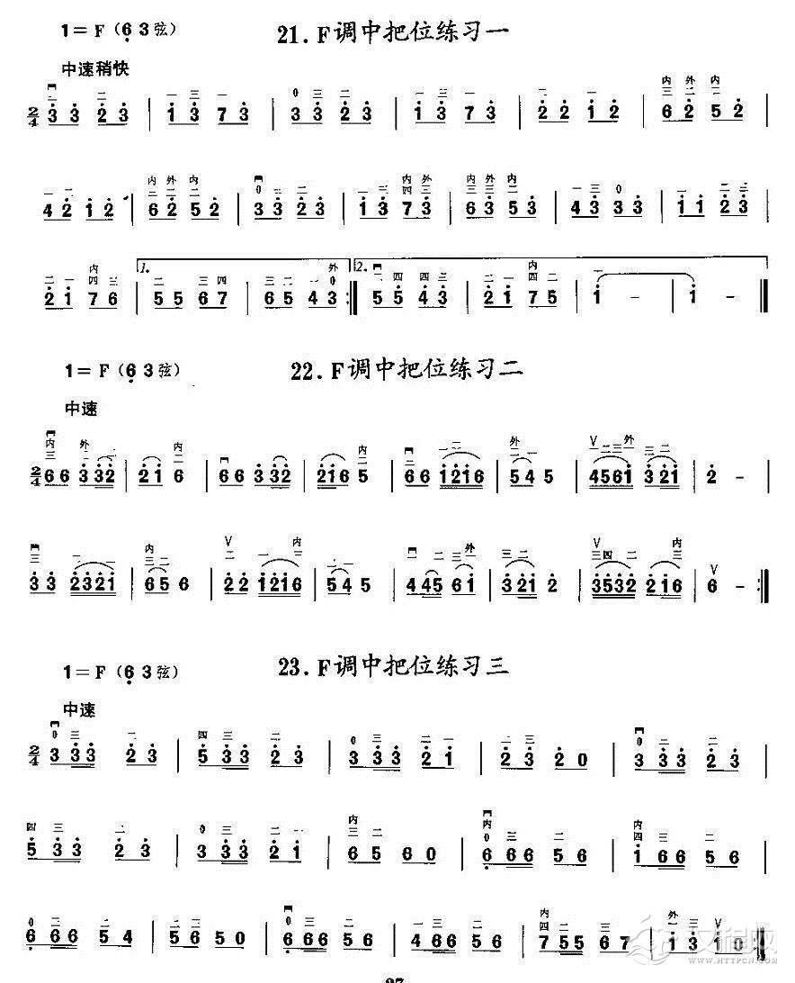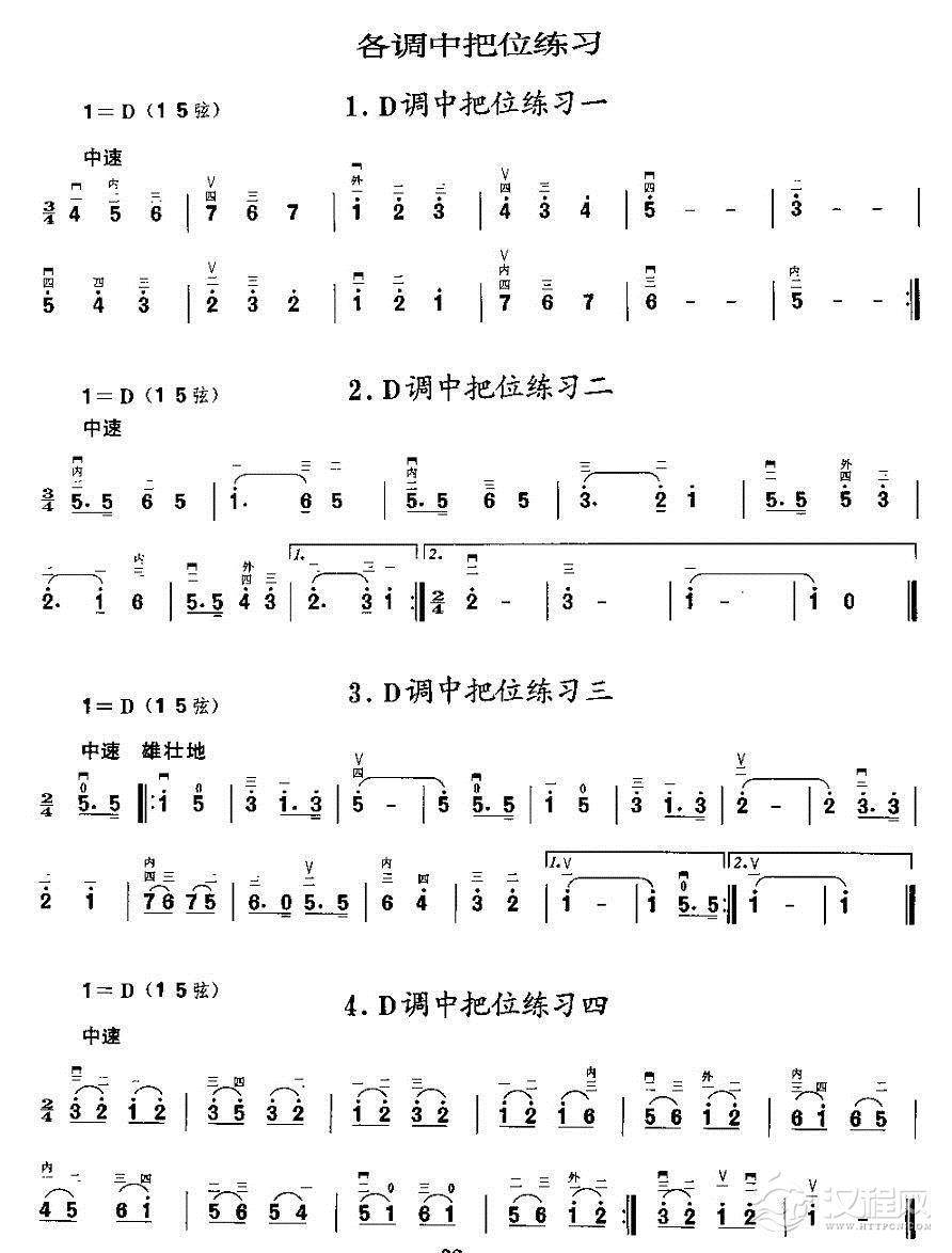曲谱大全二胡微型练习曲:各调上、中把换把练习
