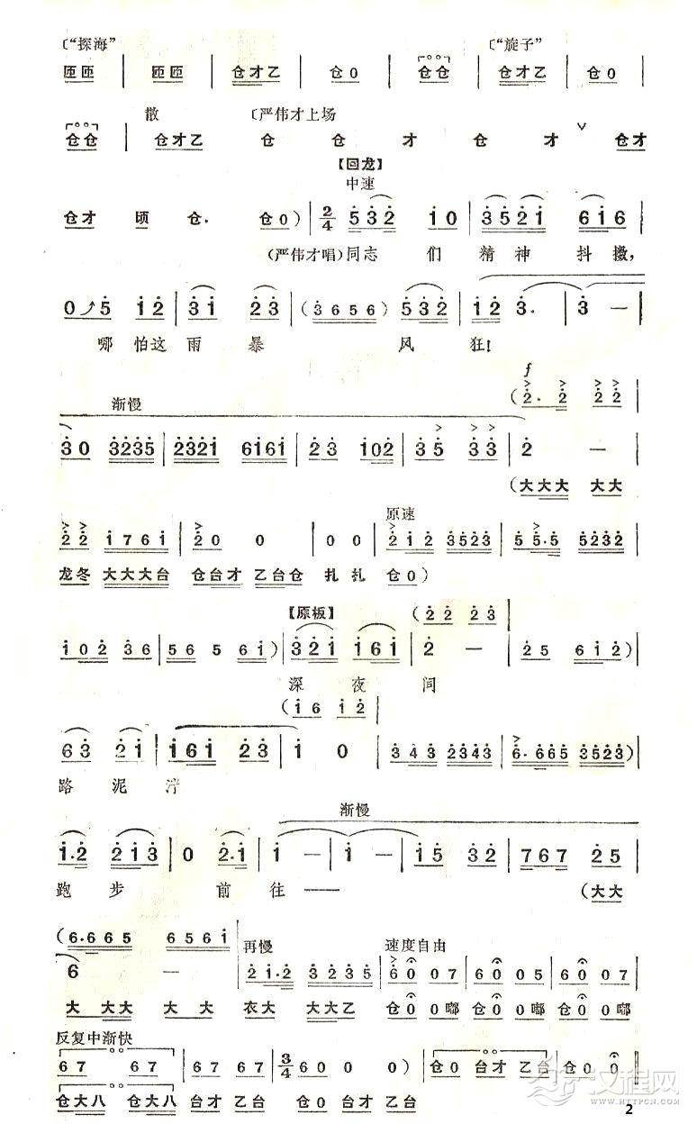 戏曲曲谱寻亲人哪顾得千难万险(京剧《奇袭白虎团》唱段)