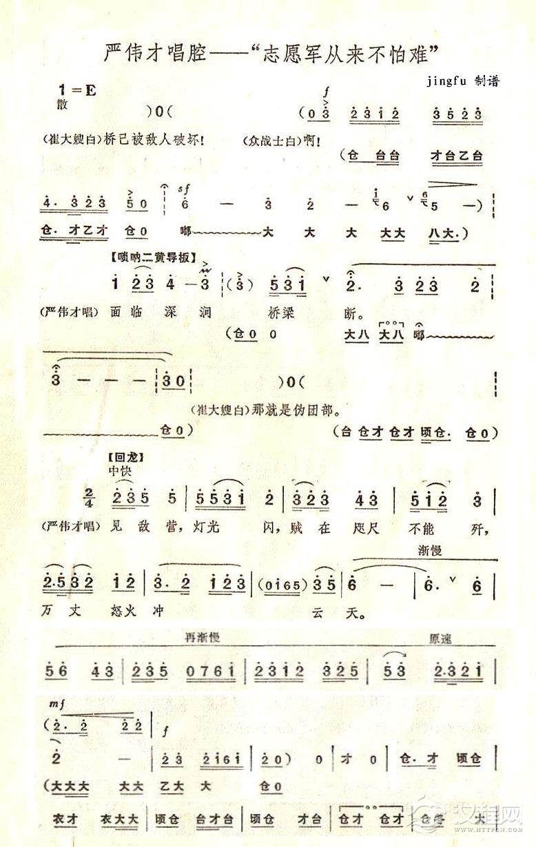 戏曲曲谱寻亲人哪顾得千难万险(京剧《奇袭白虎团》唱段)
