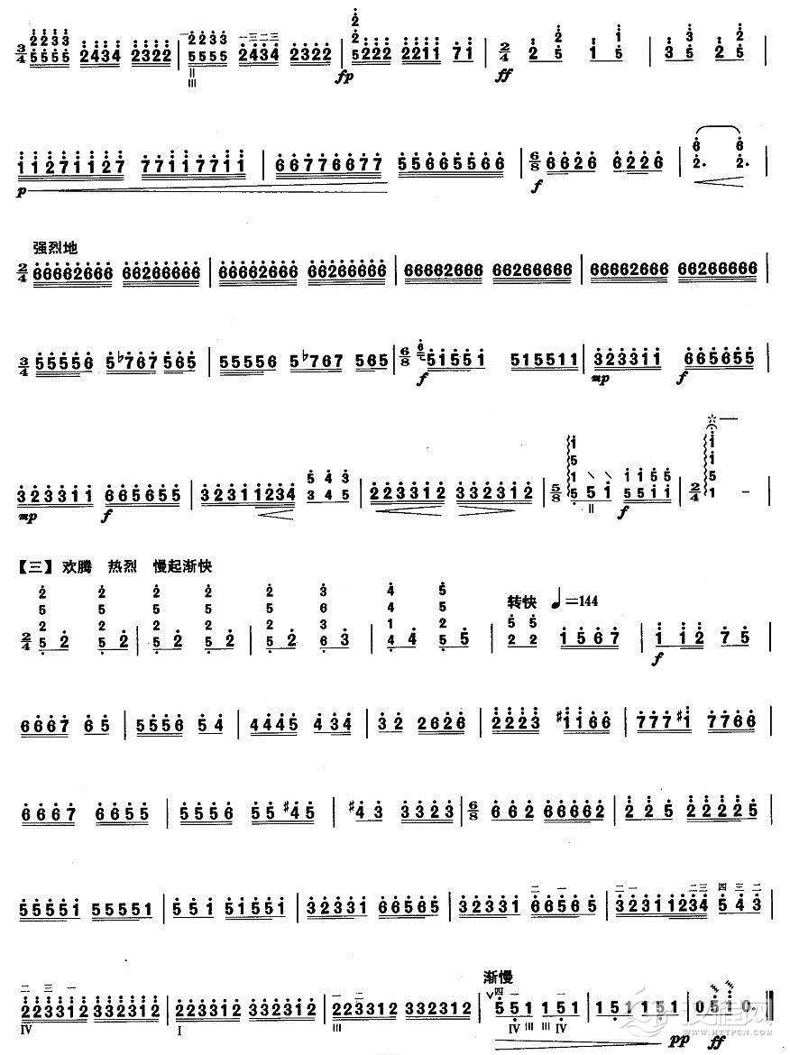 曲谱大全柳琴考级曲目十级:故土情愫(又名:陕北随想曲)