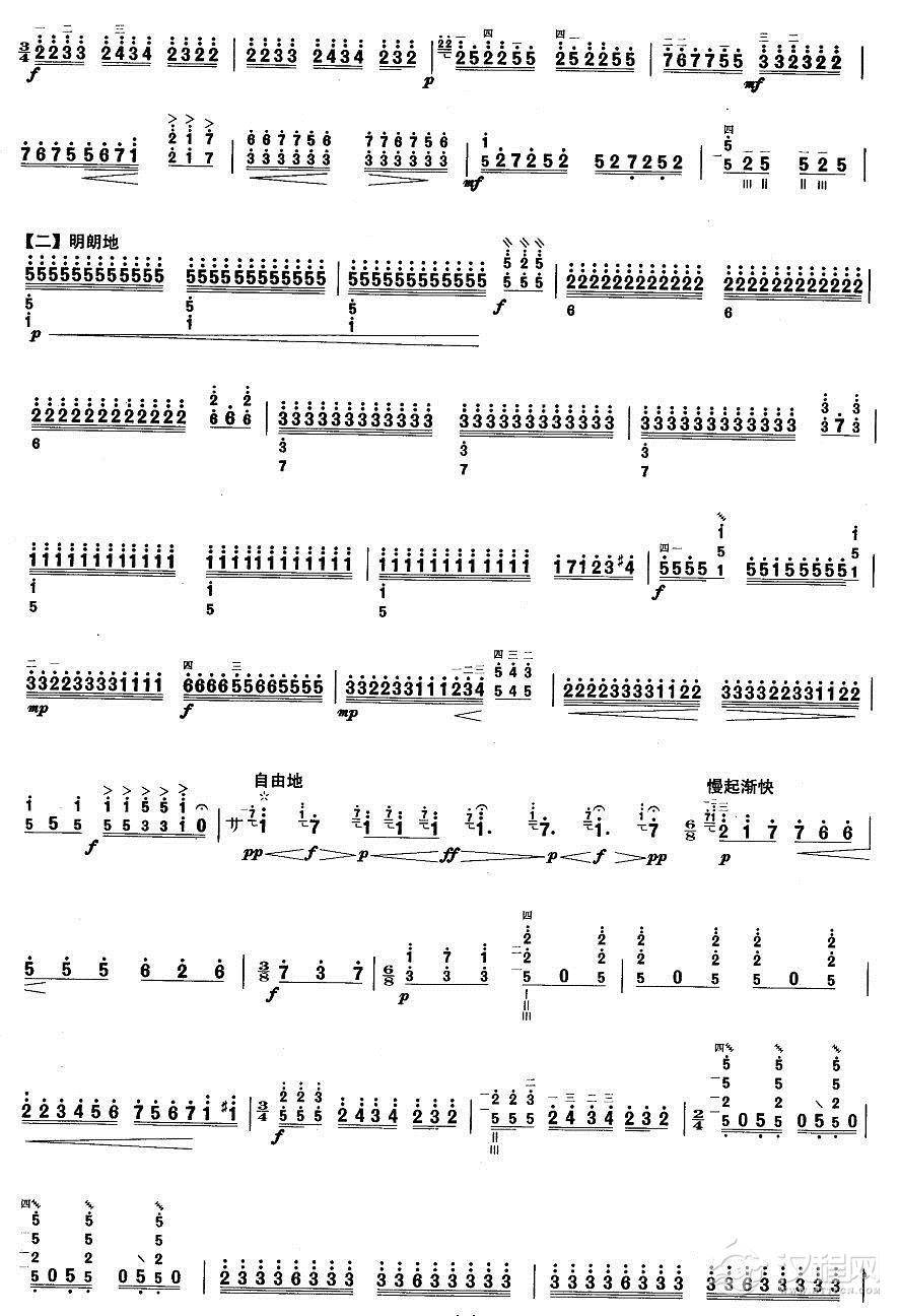 曲谱大全柳琴考级曲目八级:春情