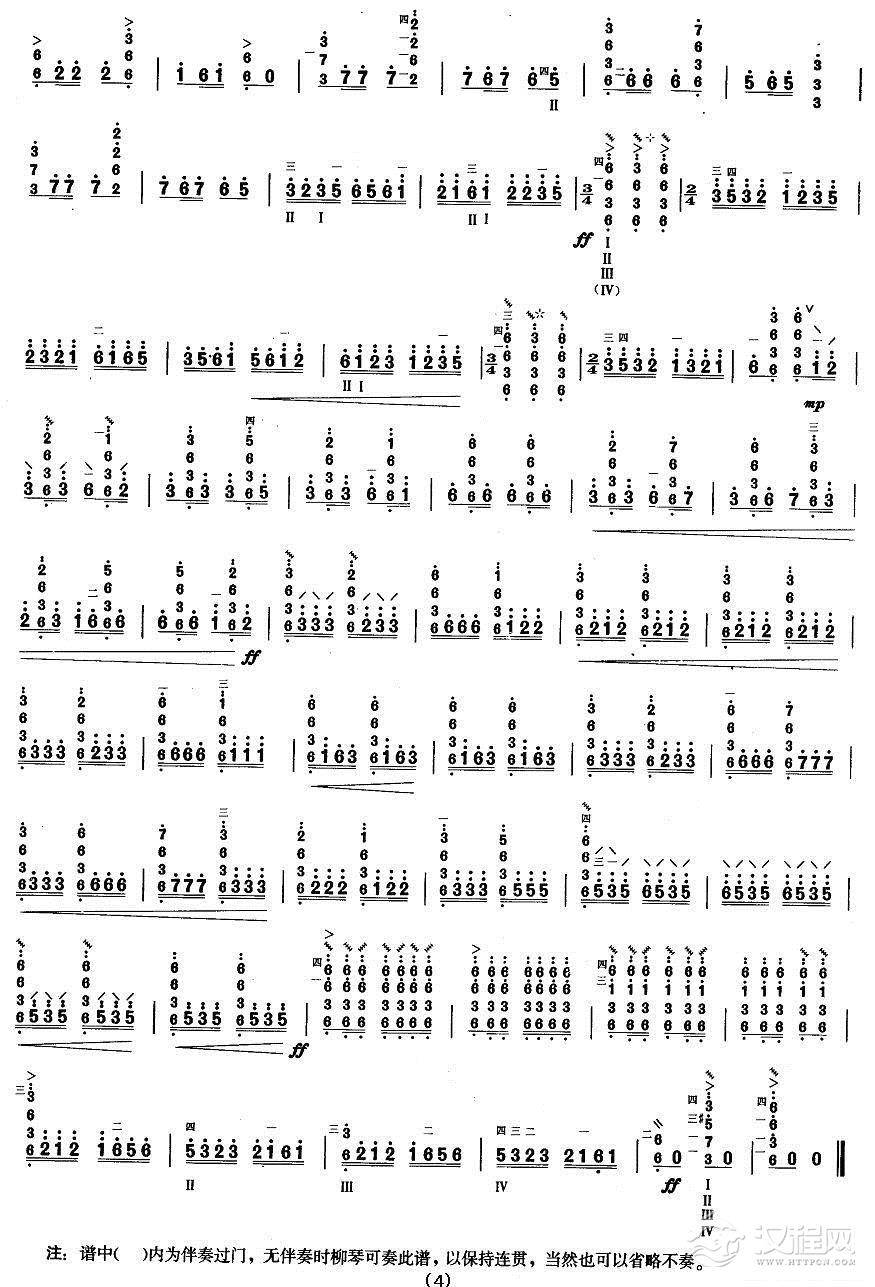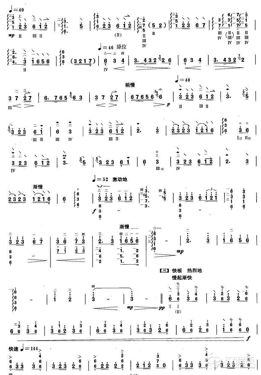 曲谱大全柳琴考级曲目十级:金色的炉台