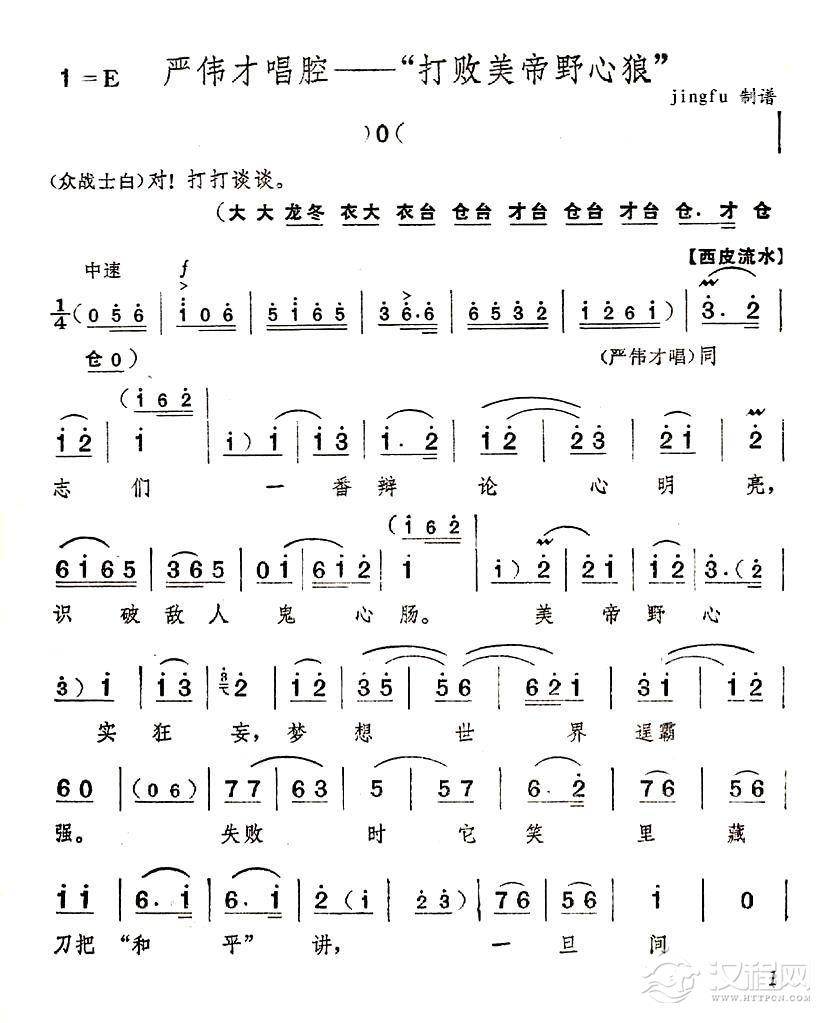 戏曲曲谱英雄人民志气刚(京剧《奇袭白虎团》唱段)