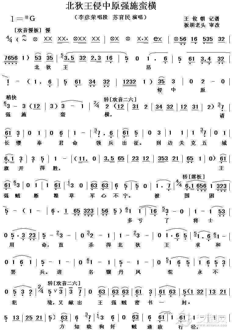 戏曲曲谱[秦腔]黄桂英他父女暗用毒计(秦腔电影《火焰驹.打路》全折唱段)之一)