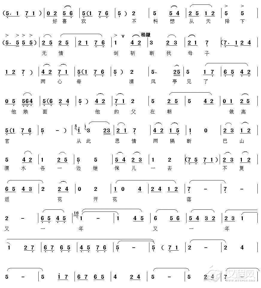 戏曲曲谱[秦腔]奴的夫遭陷害尸骨未葬(《三上轿》唱段)