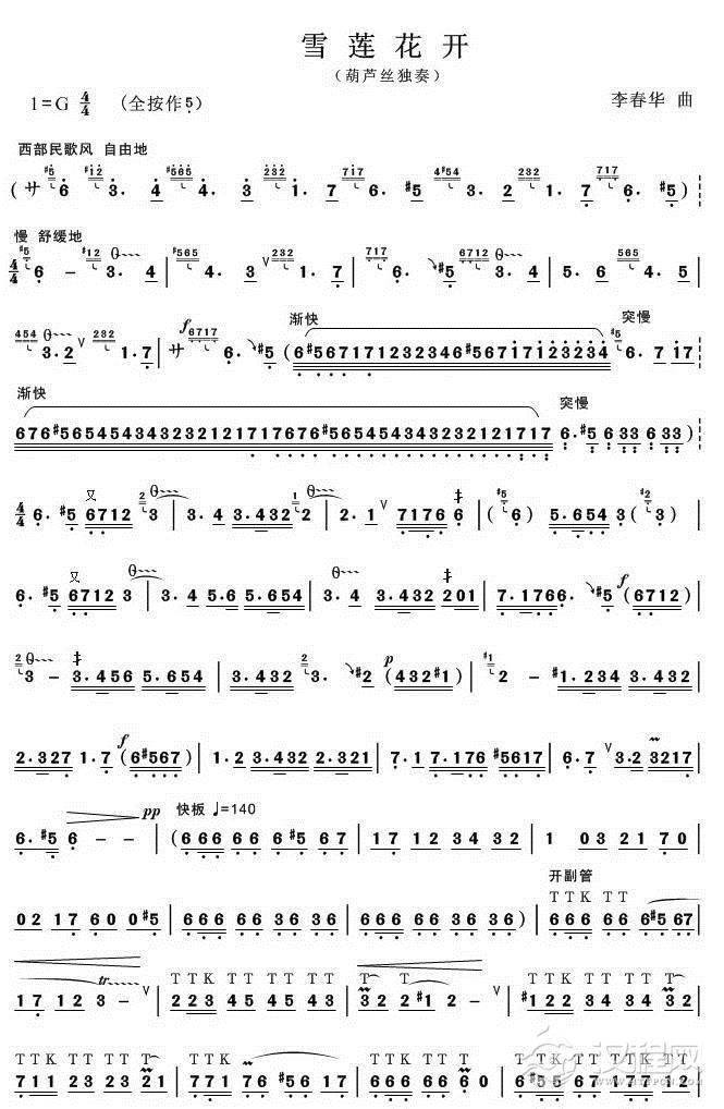 曲谱大全潮湿的心(葫芦丝谱)
