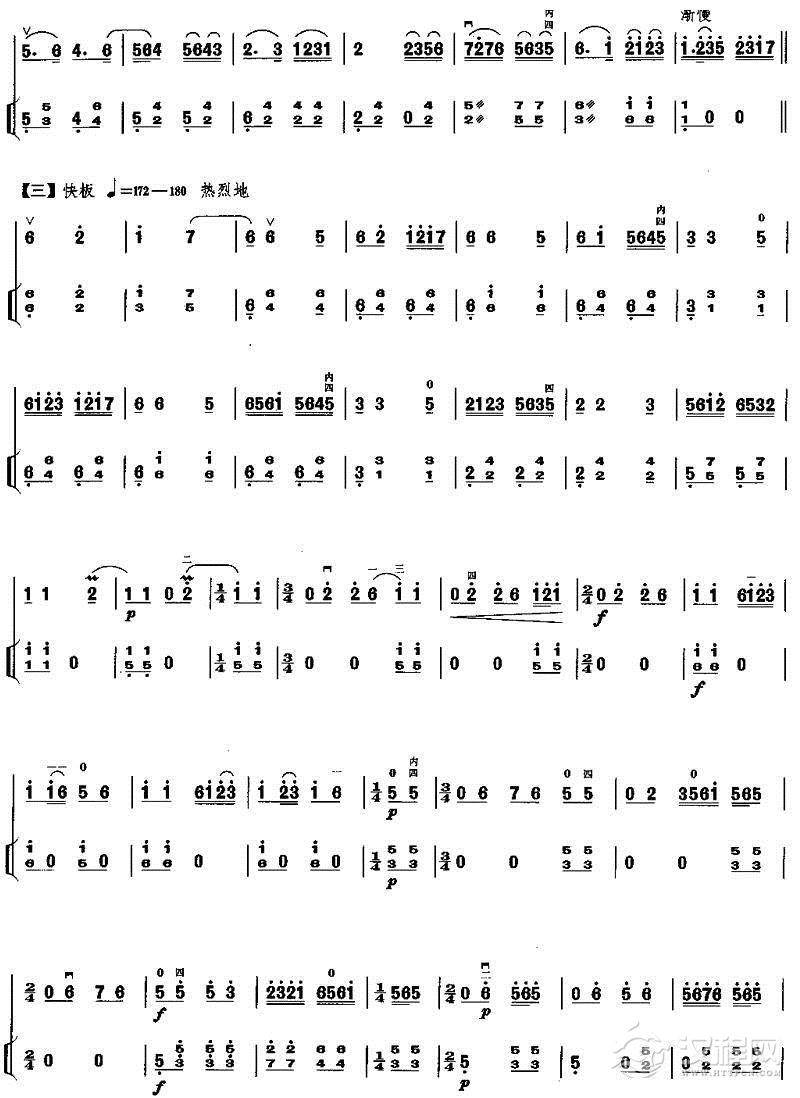 曲谱大全二胡微型练习曲:快弓练习(30—36)