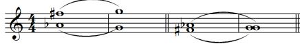 在上例b中,重属VII级变和弦第一转位解决到属和弦时,在低音部与上方声部之间发生了半音下行的平行五度,由于声部与进行上的强烈倾向性复杂和声音响效果掩盖了平行五度的效果,这种平行五度在莫扎特的作品中经常使用,故称为“莫扎特五度。”