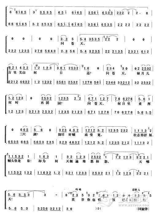 戏曲曲谱月朦朦朦月色昏黄(《断肠人》唐琬唱段)