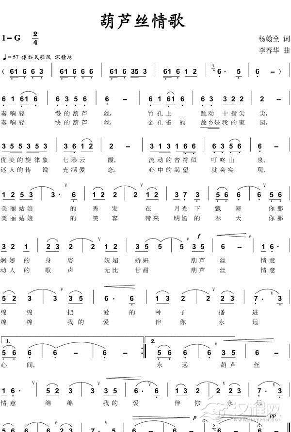 曲谱大全春来早《葫芦丝独奏曲》
