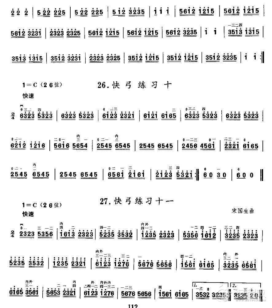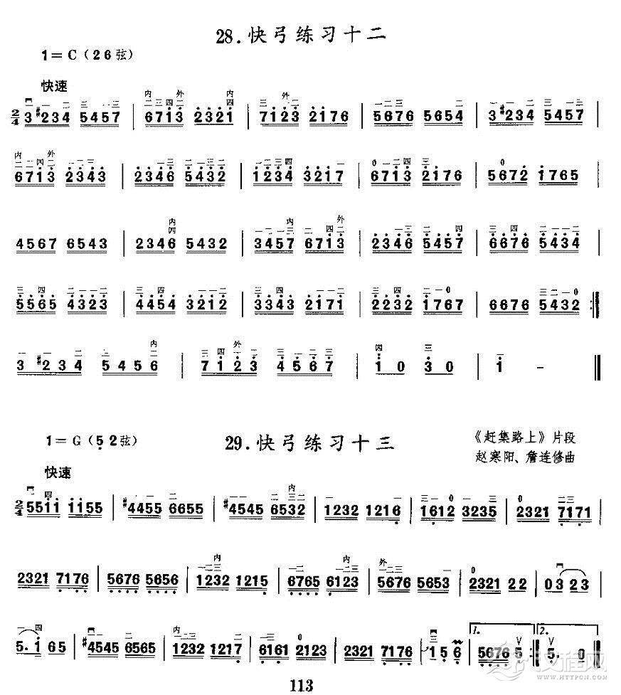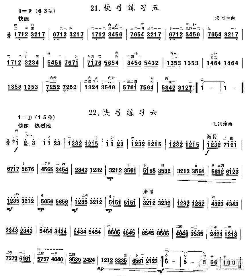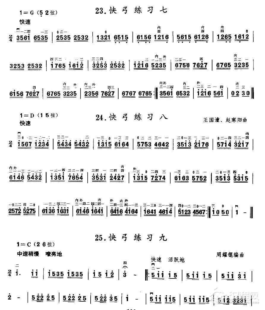 曲谱大全二胡微型练习曲:快弓练习(1—11)