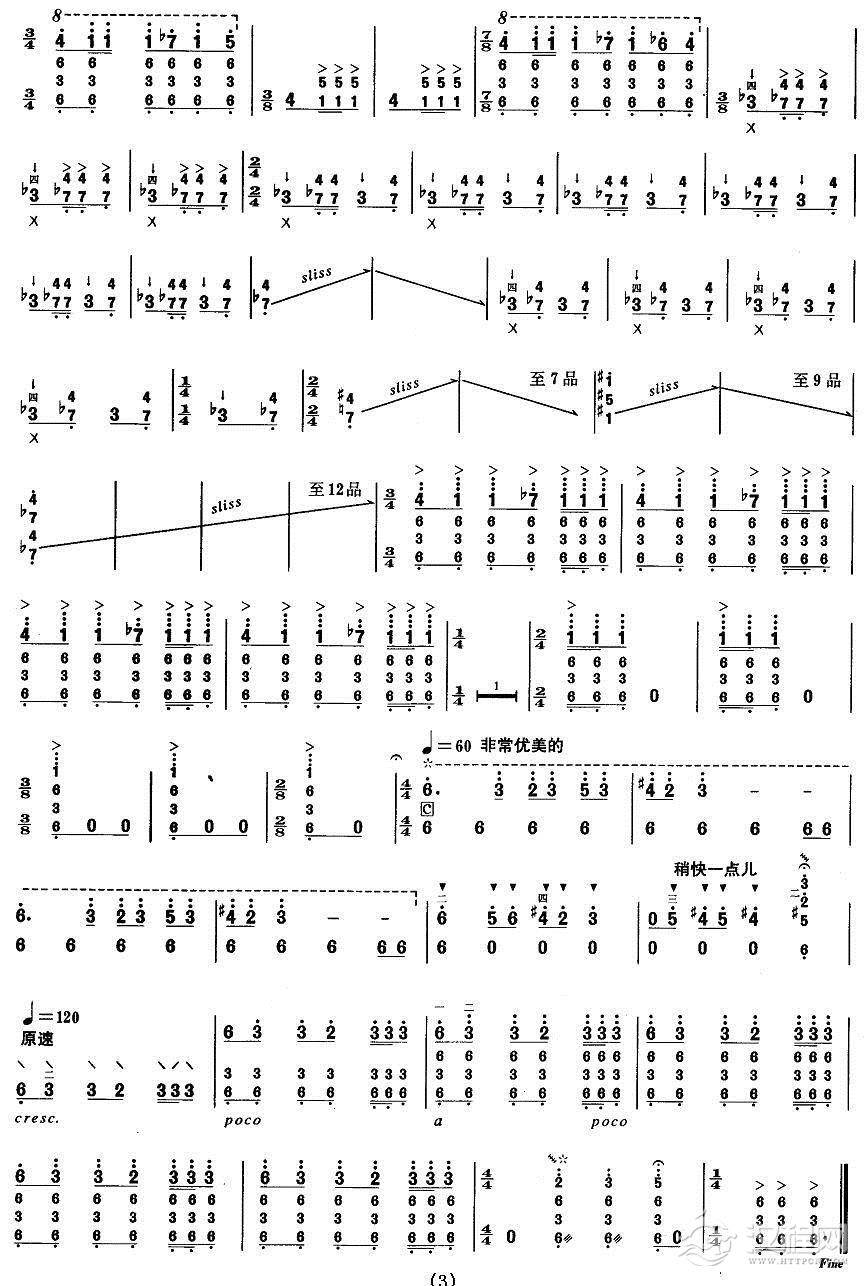 曲谱大全柳琴考级曲目十级:故土情愫(又名:陕北随想曲)