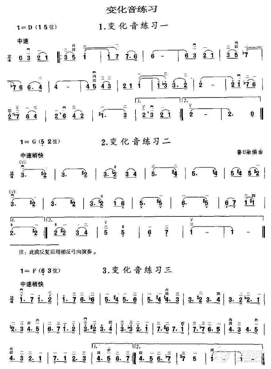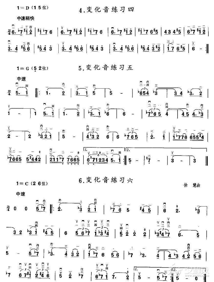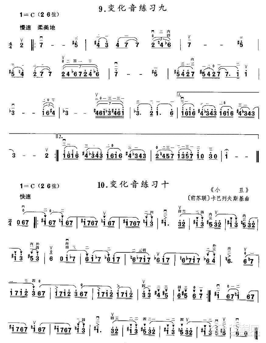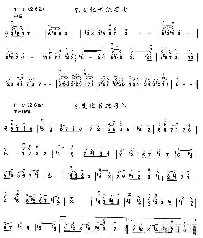 曲谱大全二胡微型练习曲:各调新把位换把练习