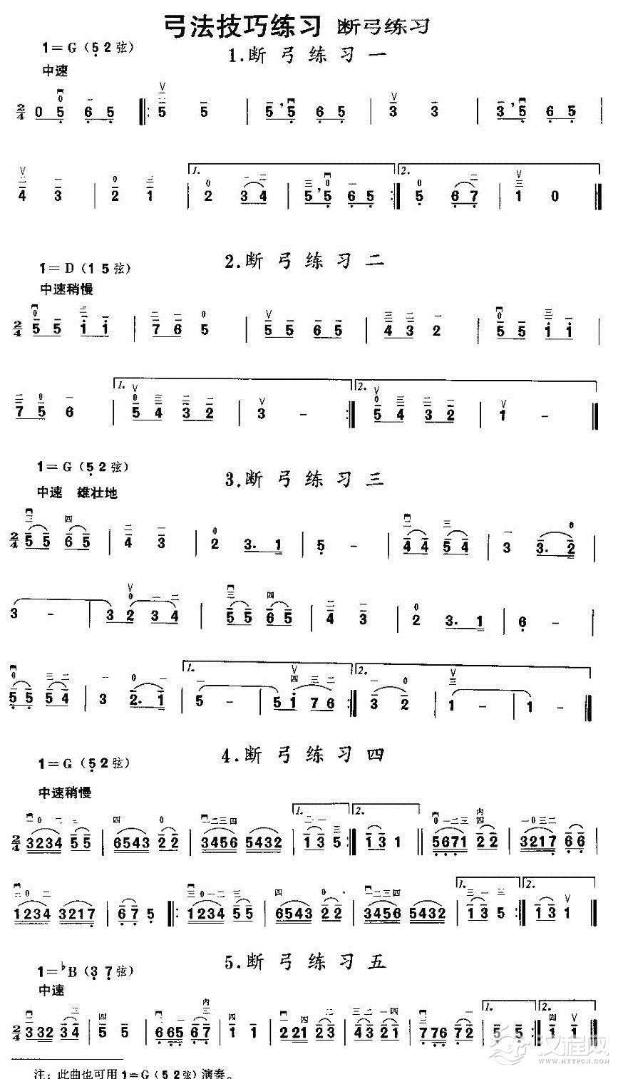 曲谱大全二胡微型练习曲:自然跳弓练习