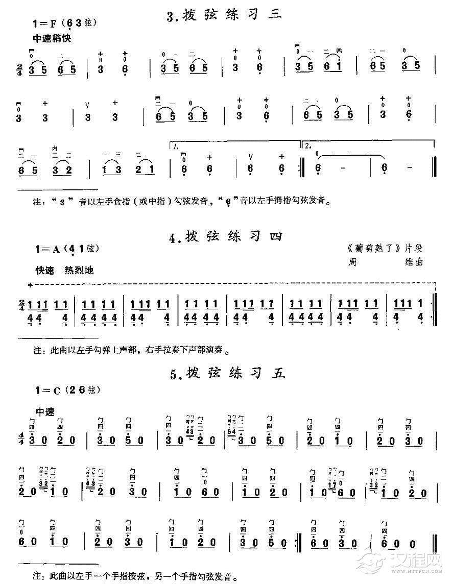 曲谱大全二胡微型练习曲:自然跳弓练习