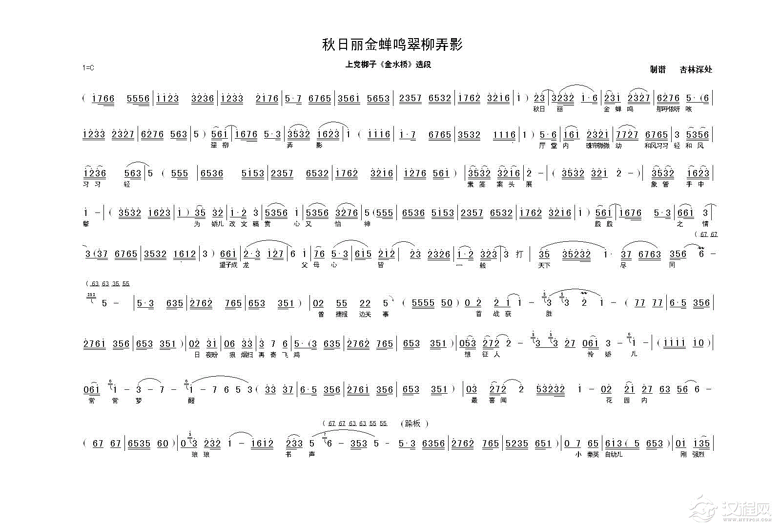 上党梆子《金水桥》“秋日丽金蝉鸣翠柳弄影”曲谱