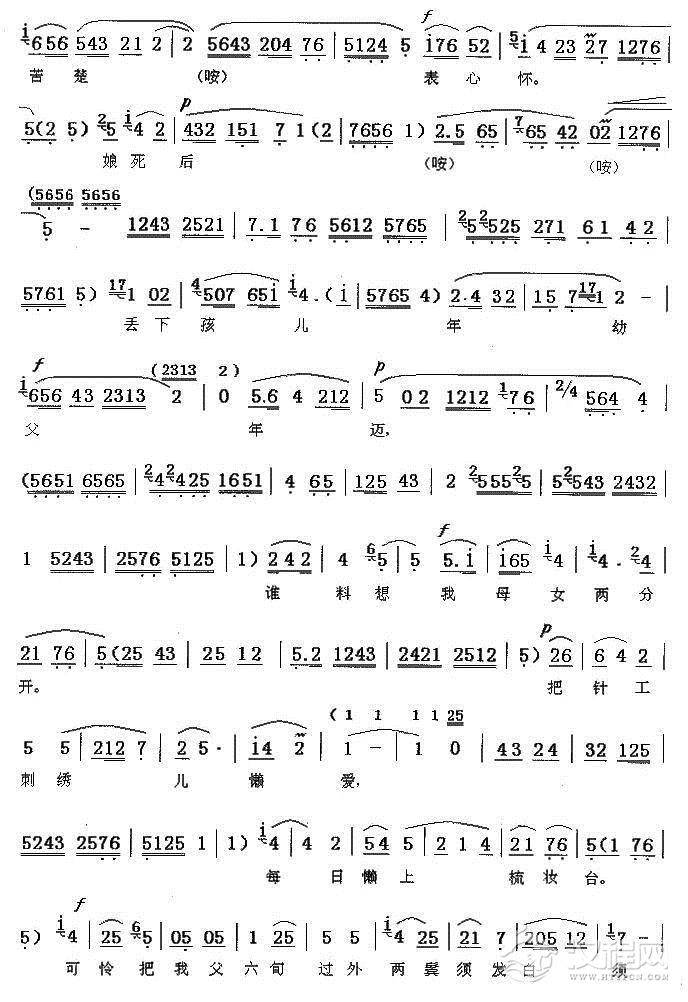 戏曲曲谱[秦腔]我自幼父母双命断(《武松杀嫂》潘金莲、武松唱段)