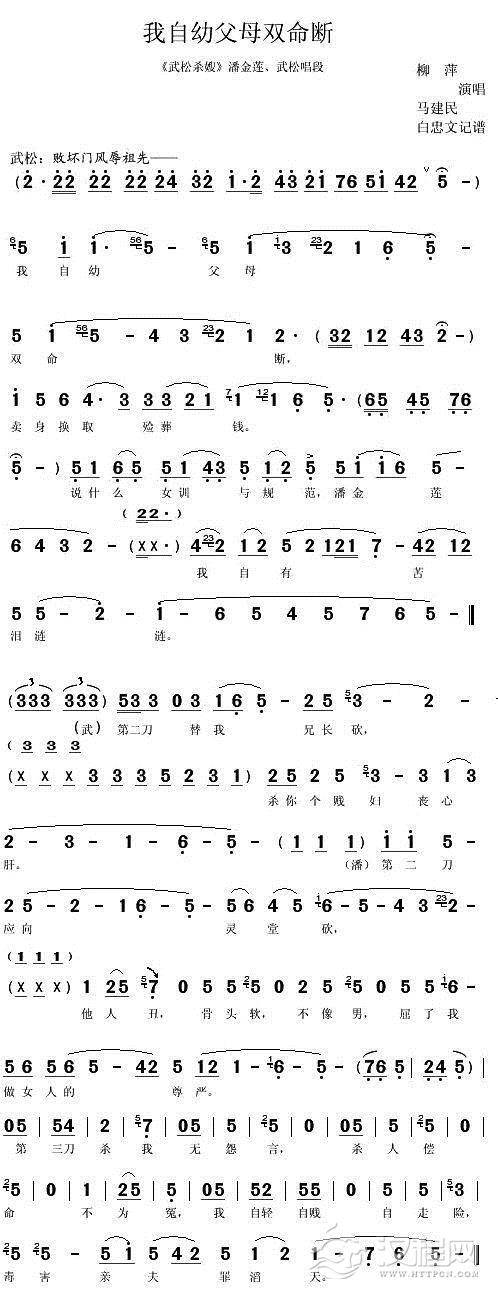 戏曲曲谱俺武松平日里英气豪迈(《武松杀嫂》潘金莲唱段 [秦腔])