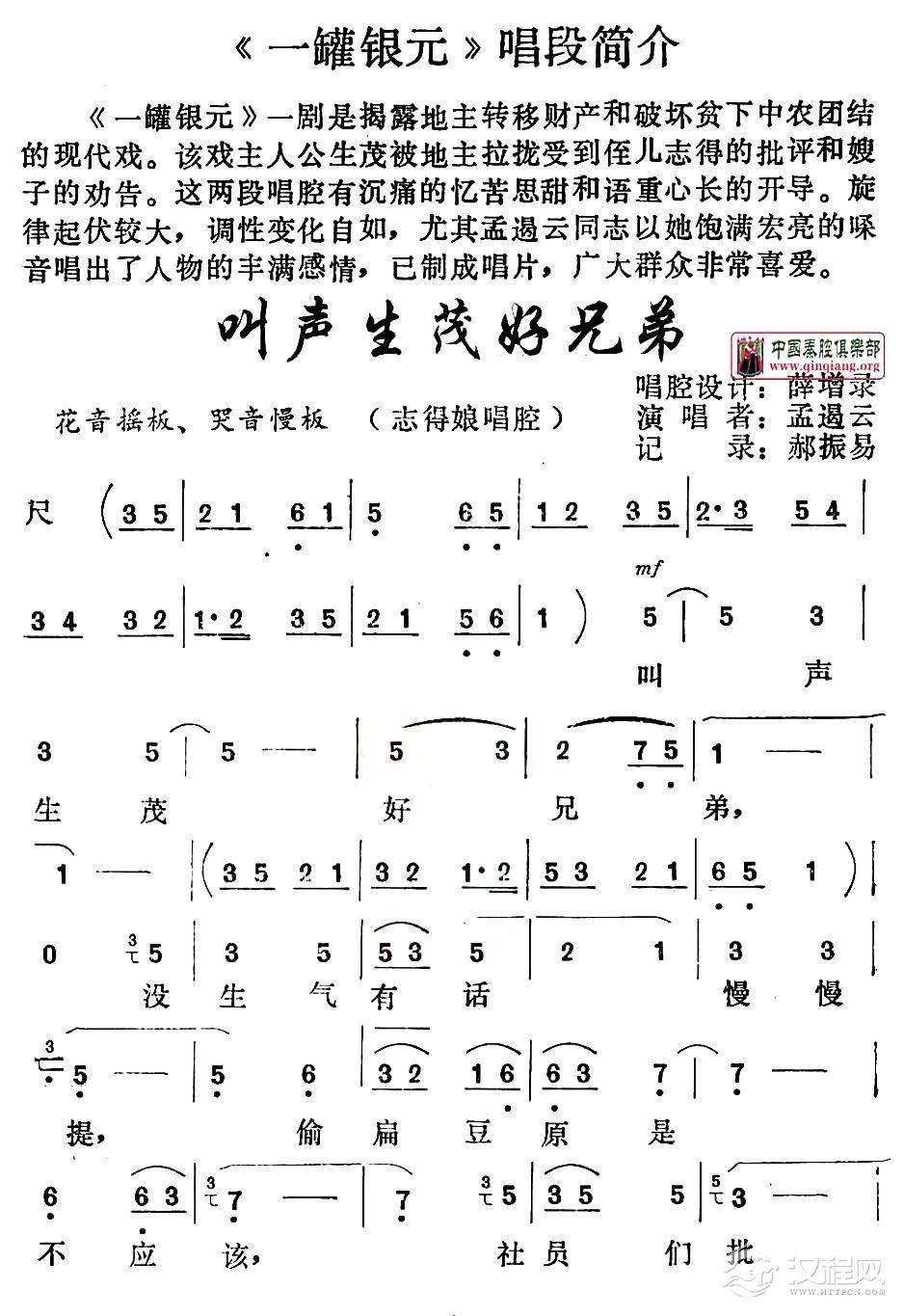 戏曲曲谱[秦腔]河湾洗衣(王俊朝记谱版)