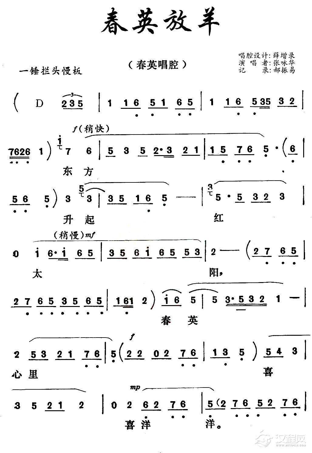 戏曲曲谱[秦腔]春风满怀情无限(《惠梅之死》选段)