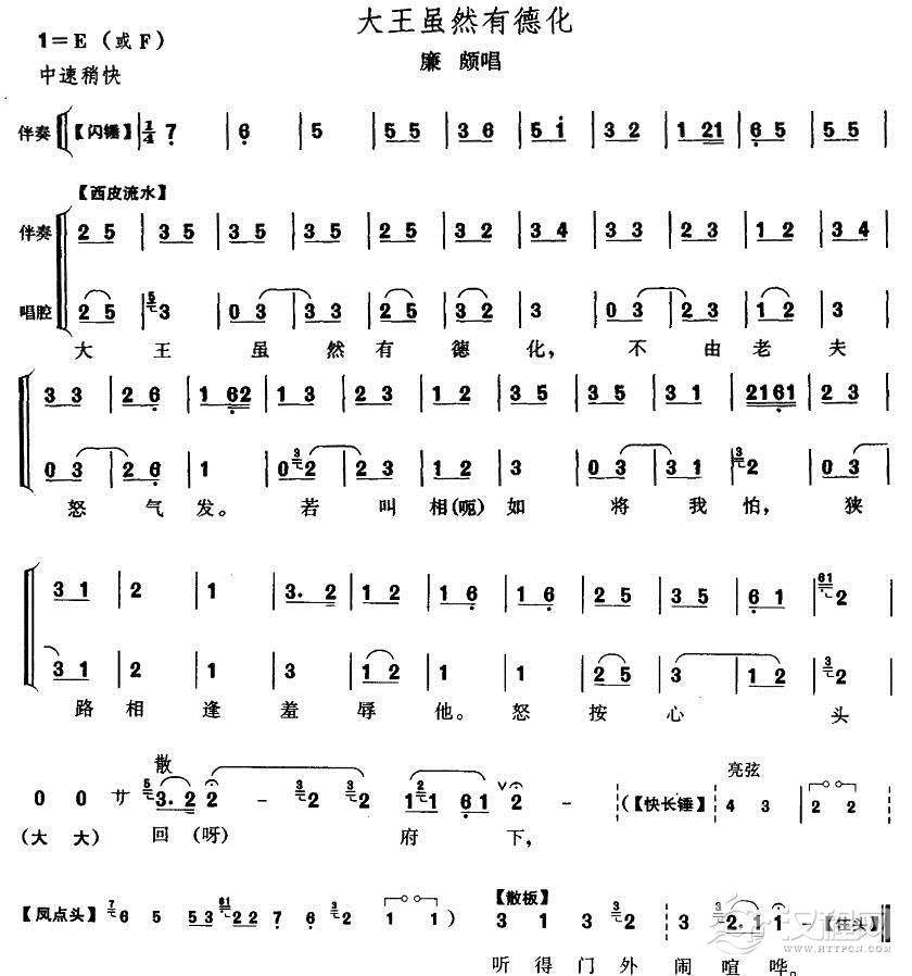 戏曲曲谱上写田伦顿首拜(《四进士》宋士杰唱段)